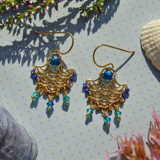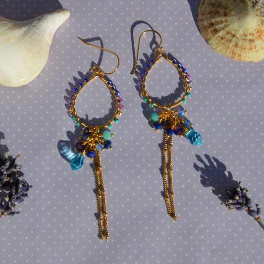 Gold-plated Sterling Silver Earrings Boho Chic - Waterfall - Blue
