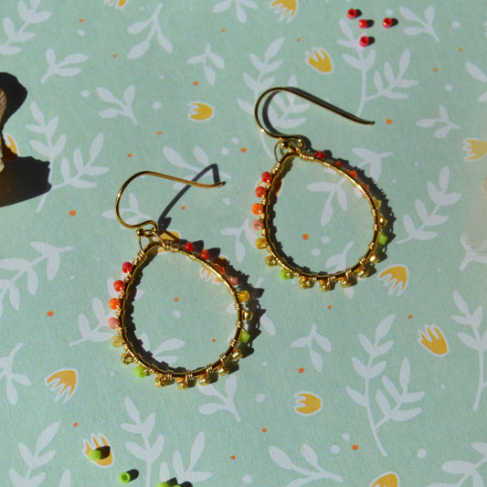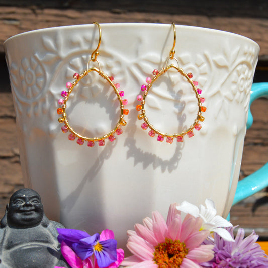 Woven Beaded Bracelet - Cerise & Orange - gold