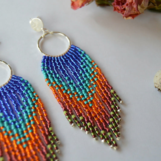 Woven Fringe Earrings - Blue & Orange