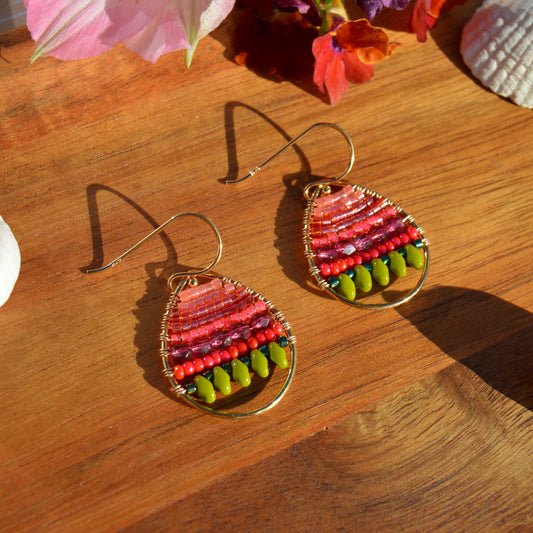 Gold-plated Sterling Silver Earrings Boho Chic - Red