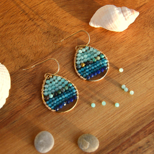 Gold-plated Sterling Silver Earrings Boho Chic - Waterfall - Blue