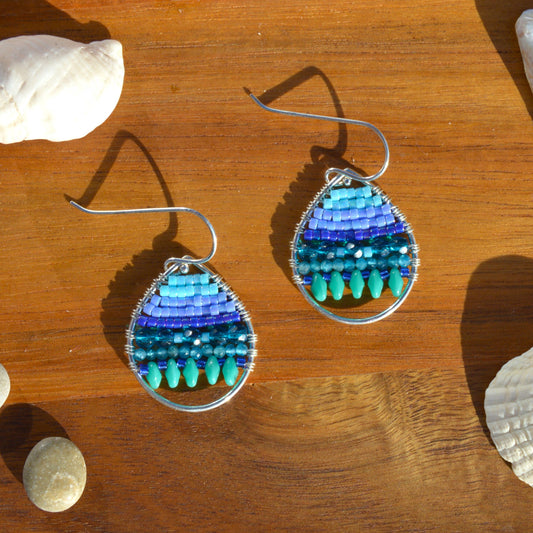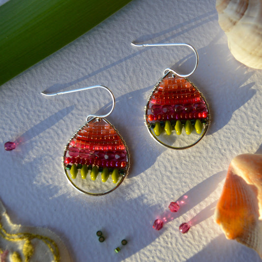 Sterling Silver Drop Earrings with Gemstones & Seed Beads - Greenary