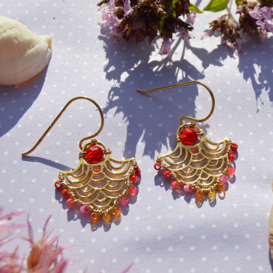 Gold-plated Sterling Silver Earrings Boho Chic - Red