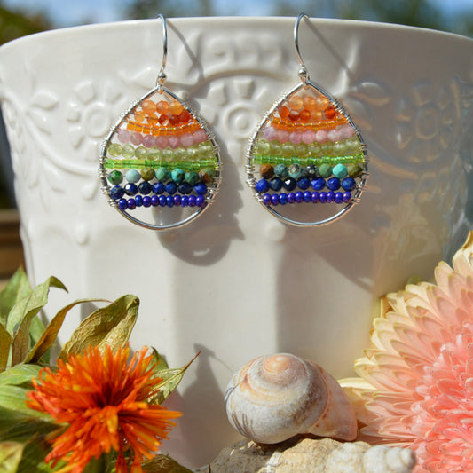 Gold-plated Sterling Silver Earrings Boho Chic - Waterfall - Blue