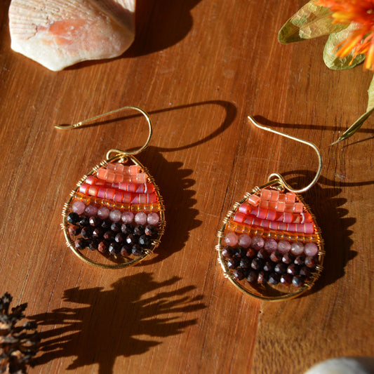 Gold-plated Sterling Silver Drop Earrings - Red Tiger Eye & Pinkish