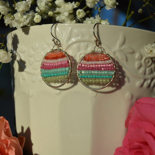 Sterling Silver Hoop Earrings with Gemstones & Seed Beads - Peony
