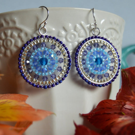 Sterling Silver Woven Czech Glass Earrings - Blue