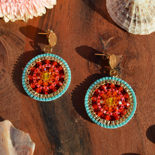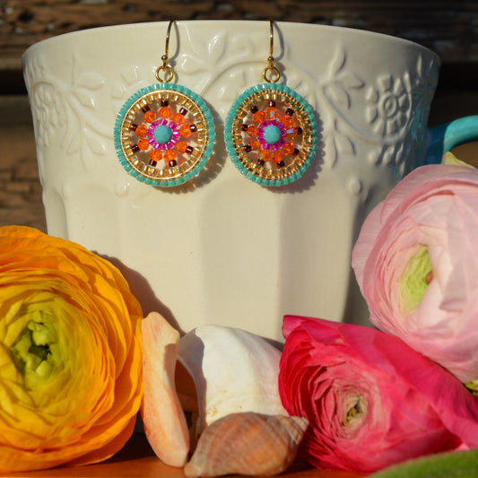 Gold-plated Sterling Silver Woven Glass Earrings - Turquoise & Orange