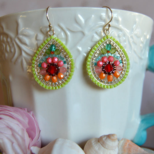 Woven Sterling Silver Drop Earrings - Colourful Flower
