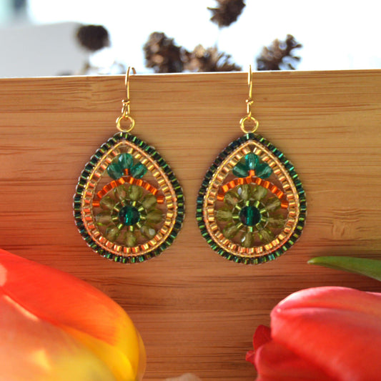 Gold-plated Sterling Silver Woven Glass Earrings Greenary