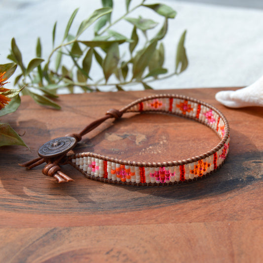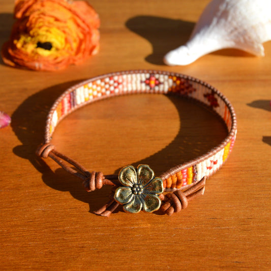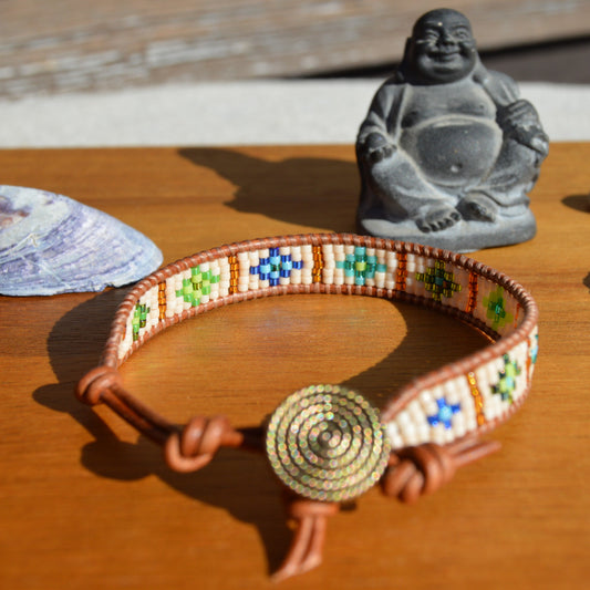 Boho Beaded Leather Wrap Bracelet - Blooming