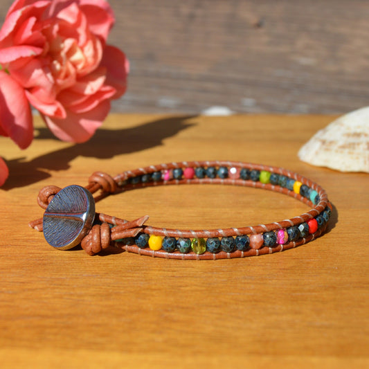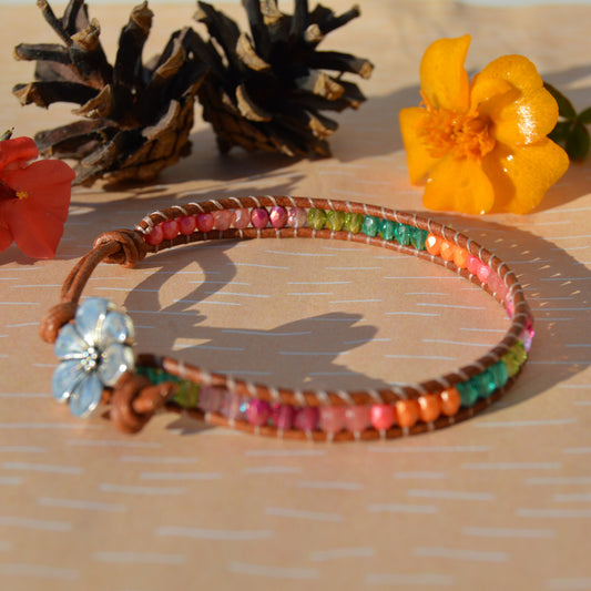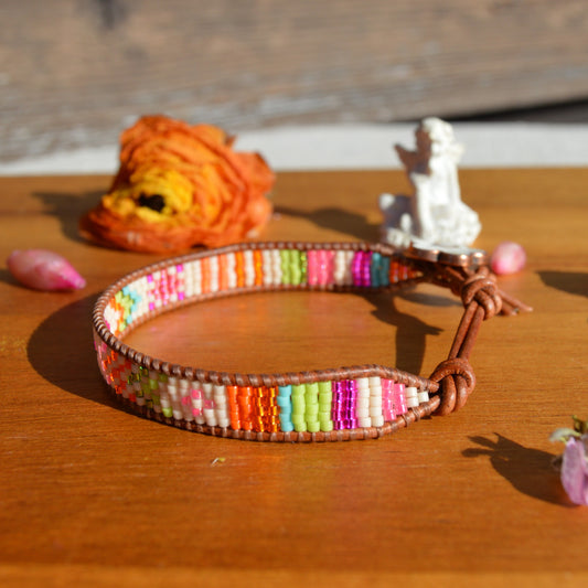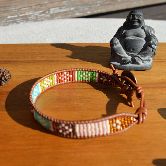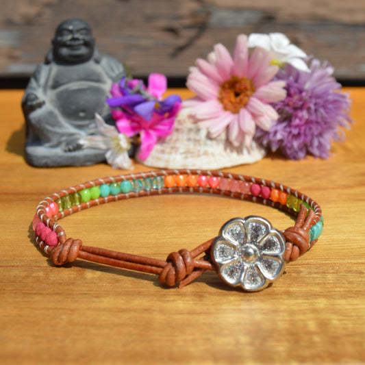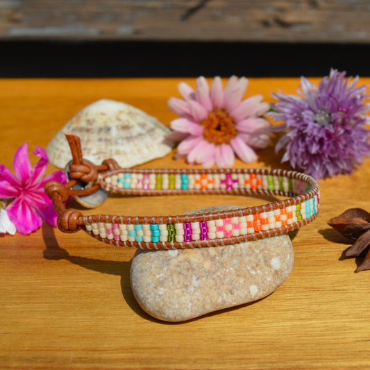 Boho Beaded Leather Wrap Bracelet - Colourful Garden