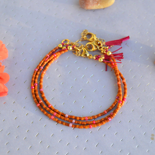 Beaded Bracelet Candies with a tassel - orange