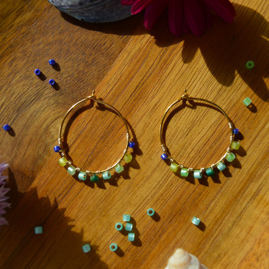 Small Gold-plated Sterling Silver Creoles - Limeish Blue