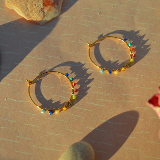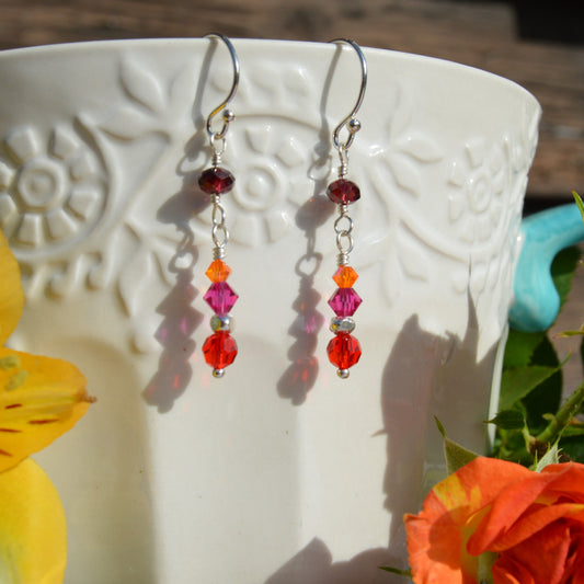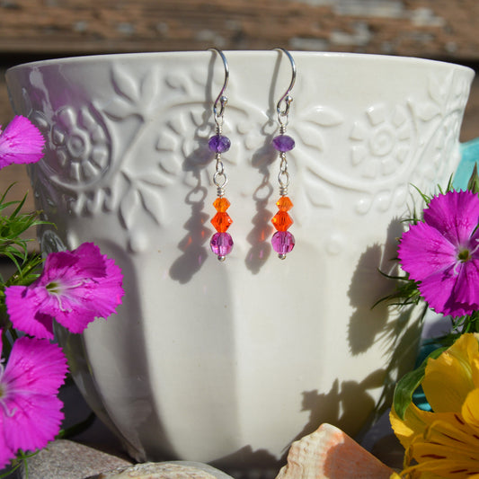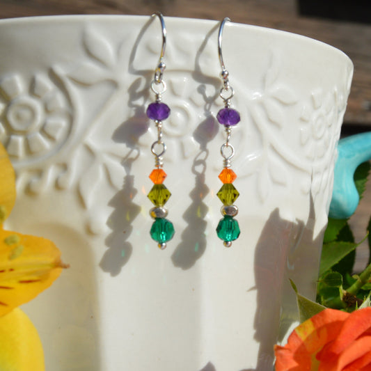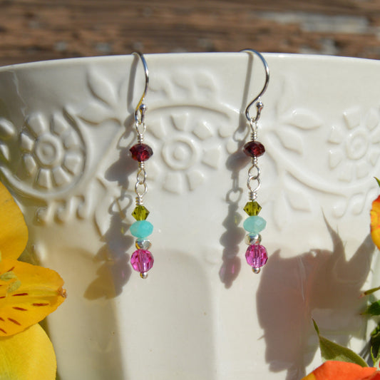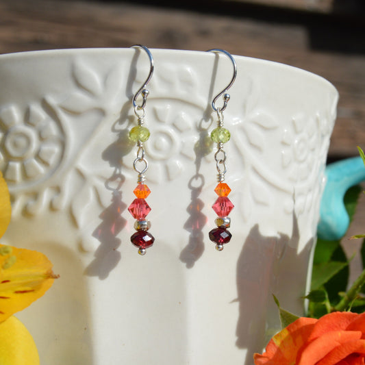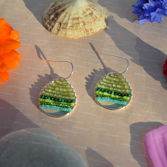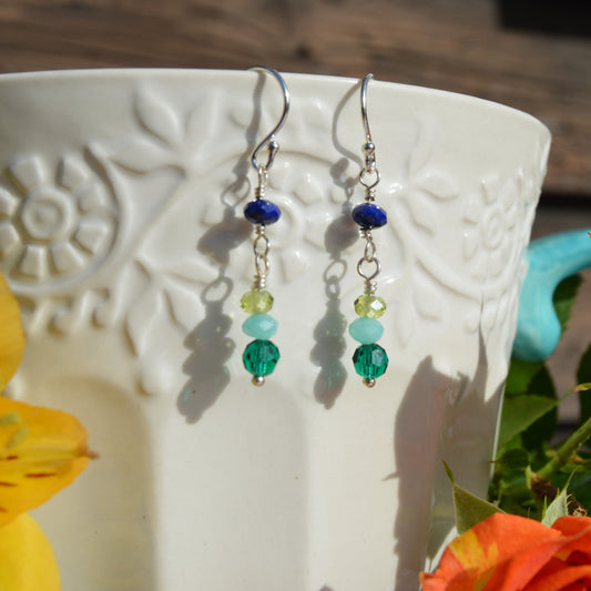 Sterling Silver Drop Earrings with Gemstones & Seed Beads - Greenary