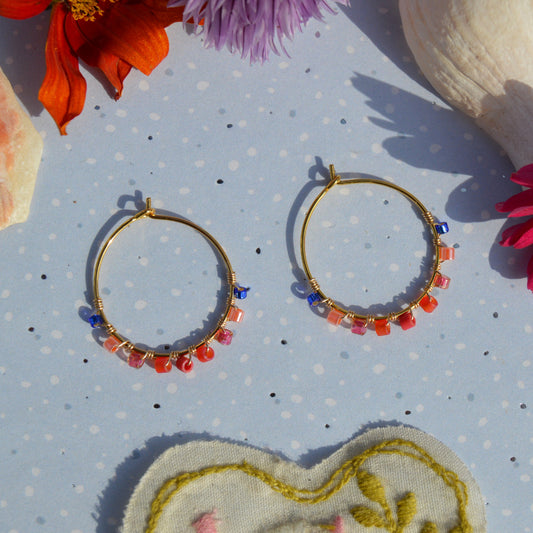 Small Gold-plated Sterling Silver Creoles - Pinkish Blue